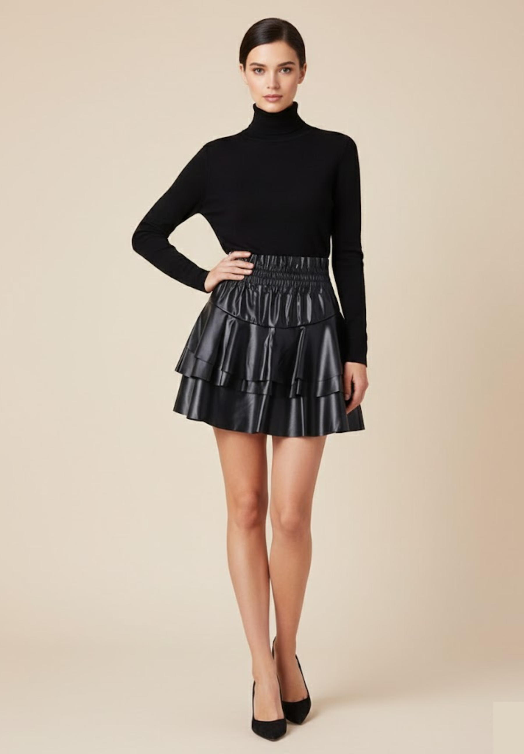 Jupe plissée courte en cuir PLISSÉA : audace moderne et élégance affirmée