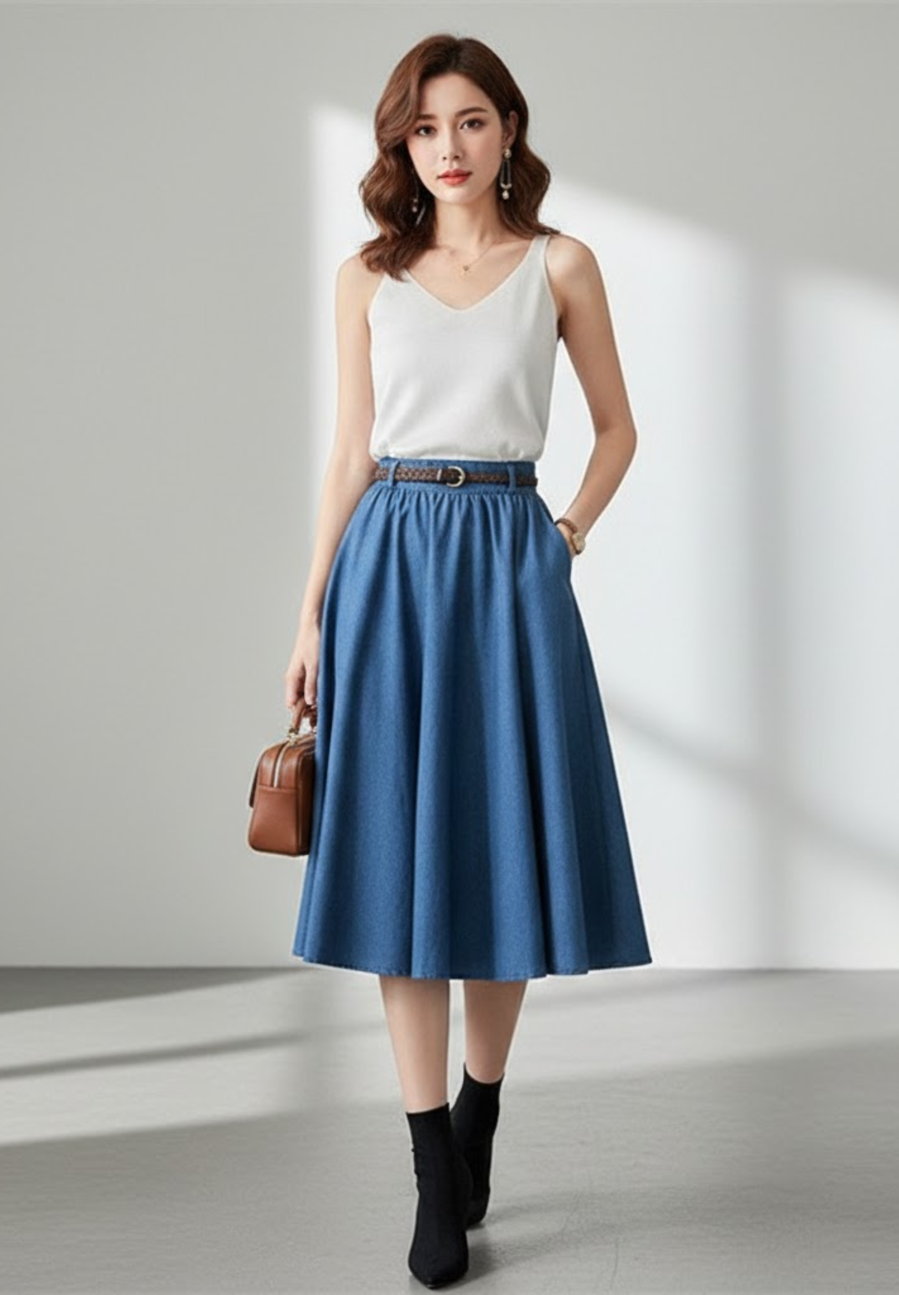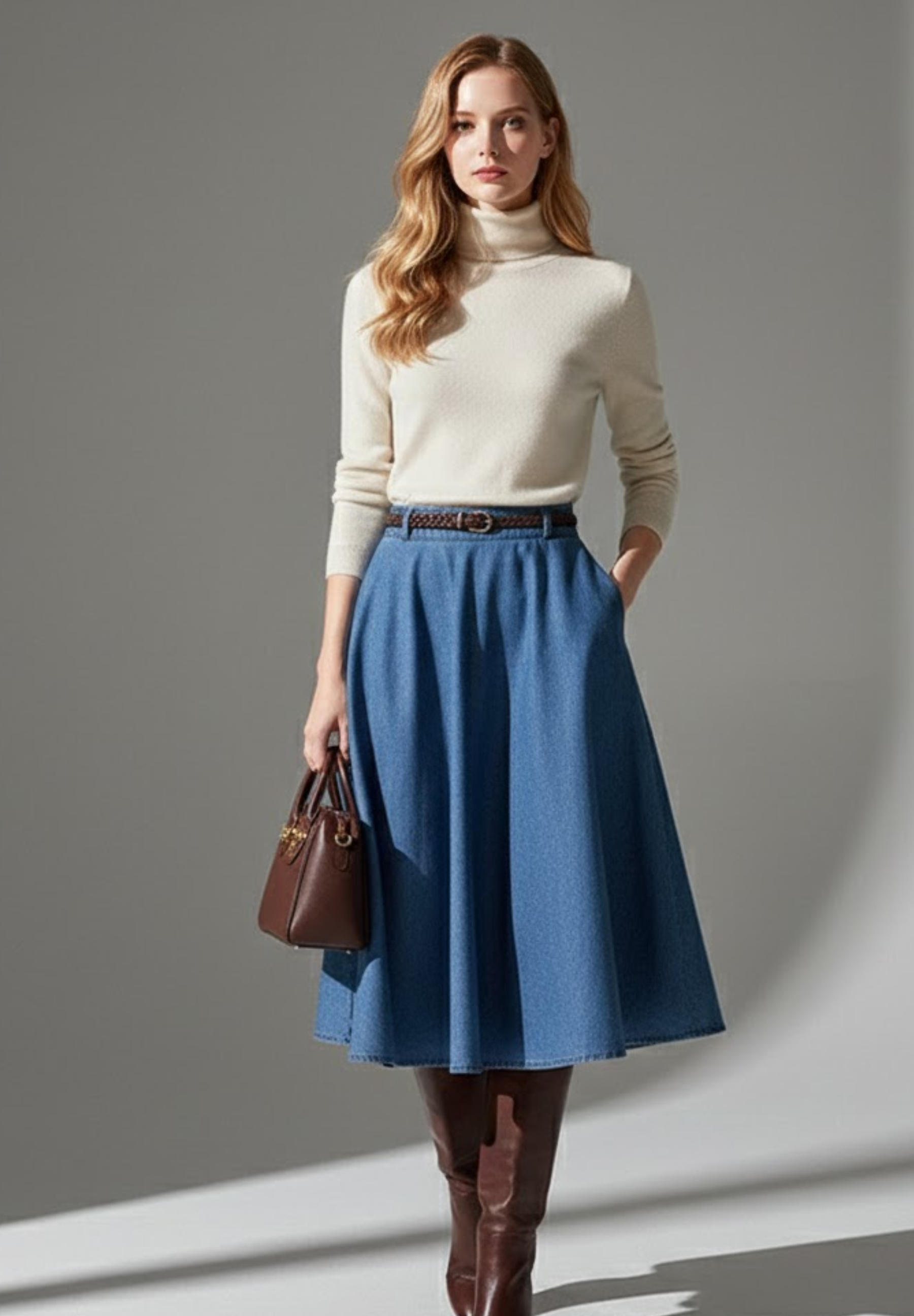 Jupe en denim PLISSÉA – L’élégance rétro au mouvement fluide