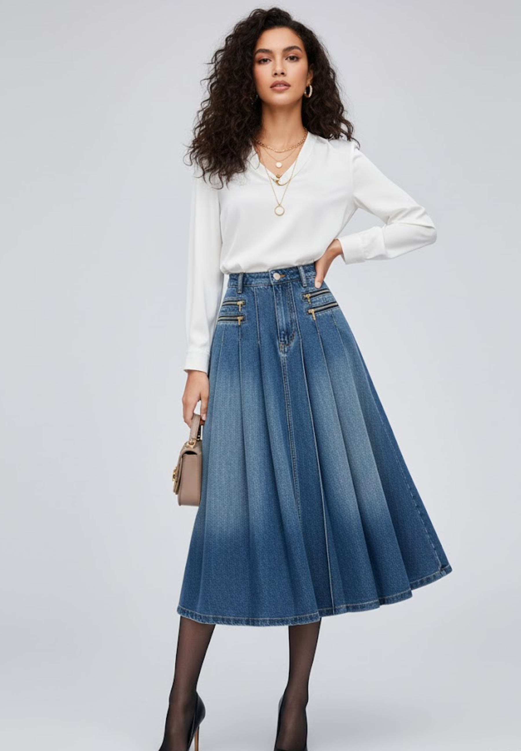 La jupe en jean est une pièce iconique du dressing féminin, revisitée ici avec une silhouette plissée pour allier style moderne et confort. Conçue en denim, elle offre une tenue structurée tout en restant agréable à porter au quotidien.