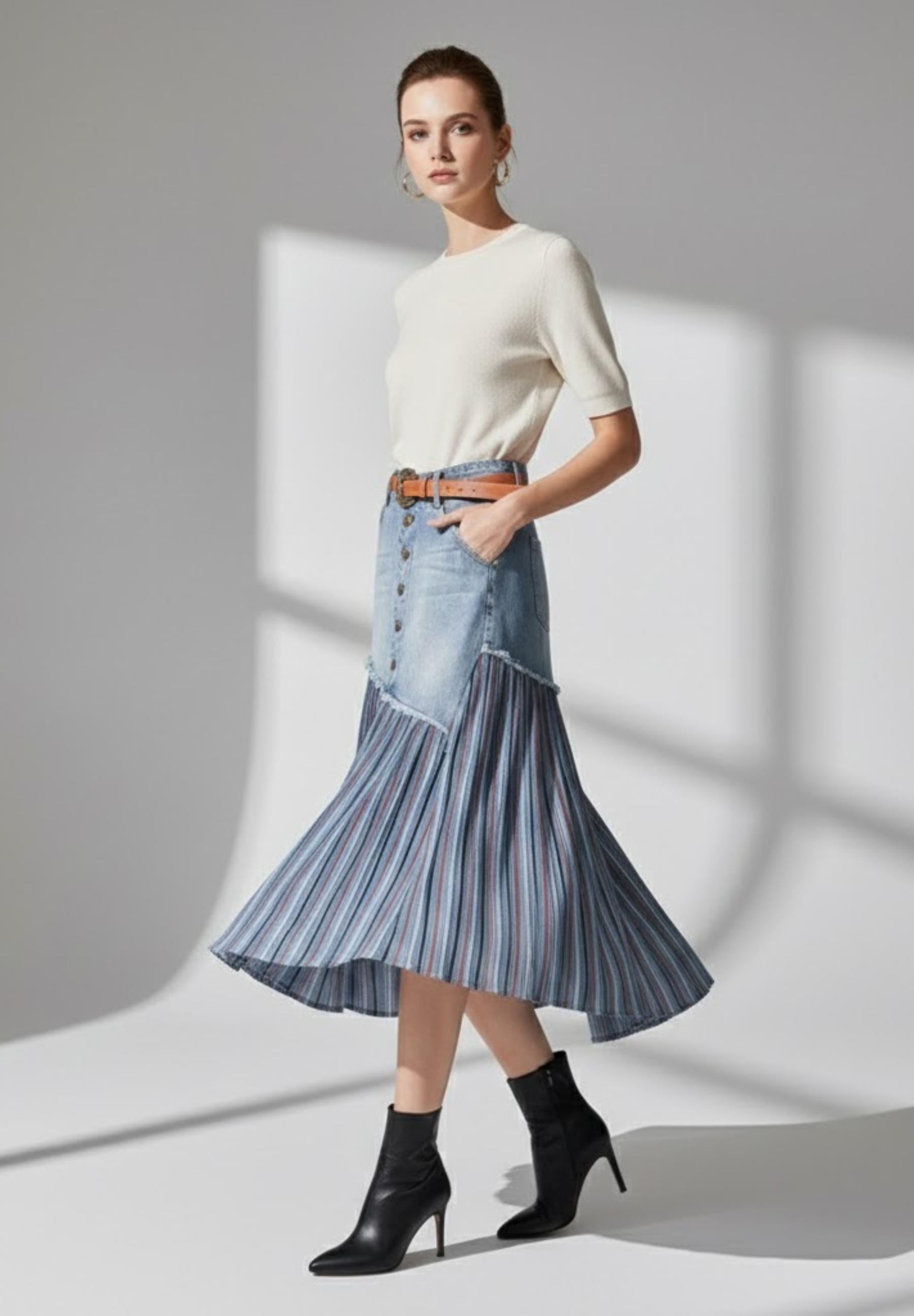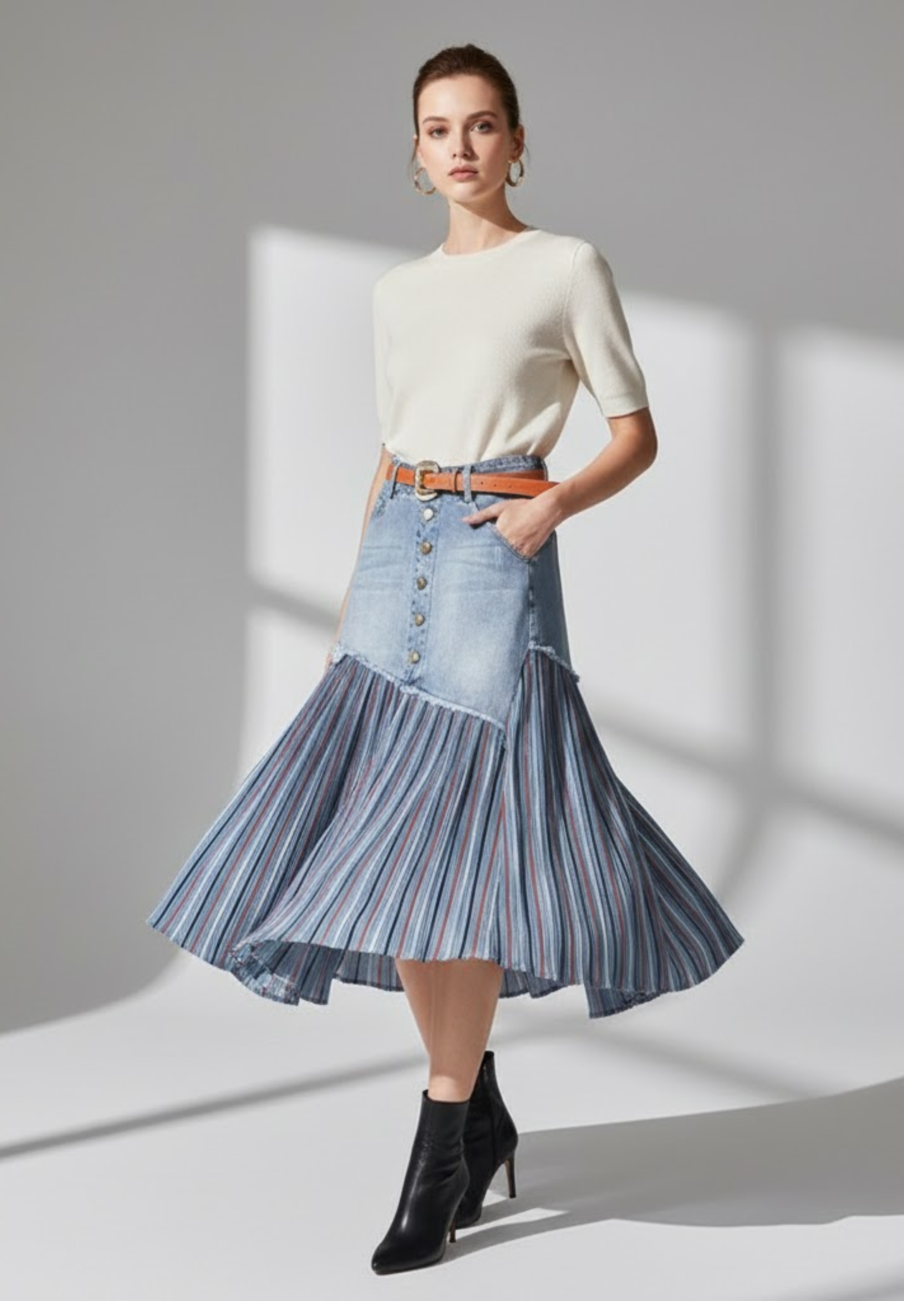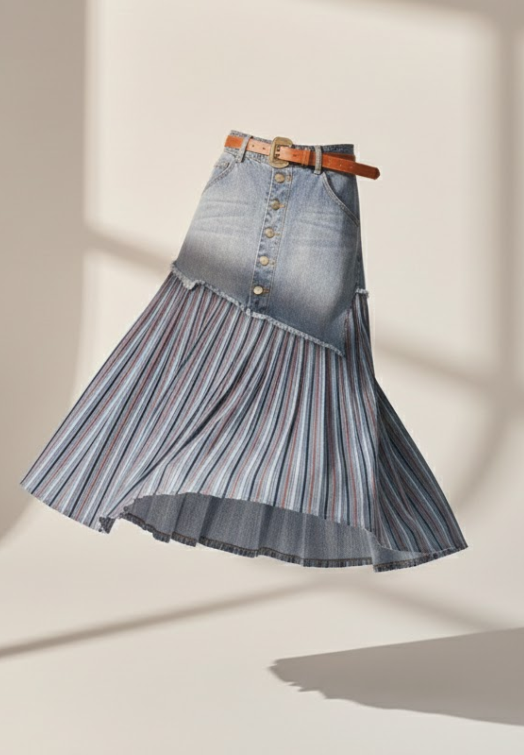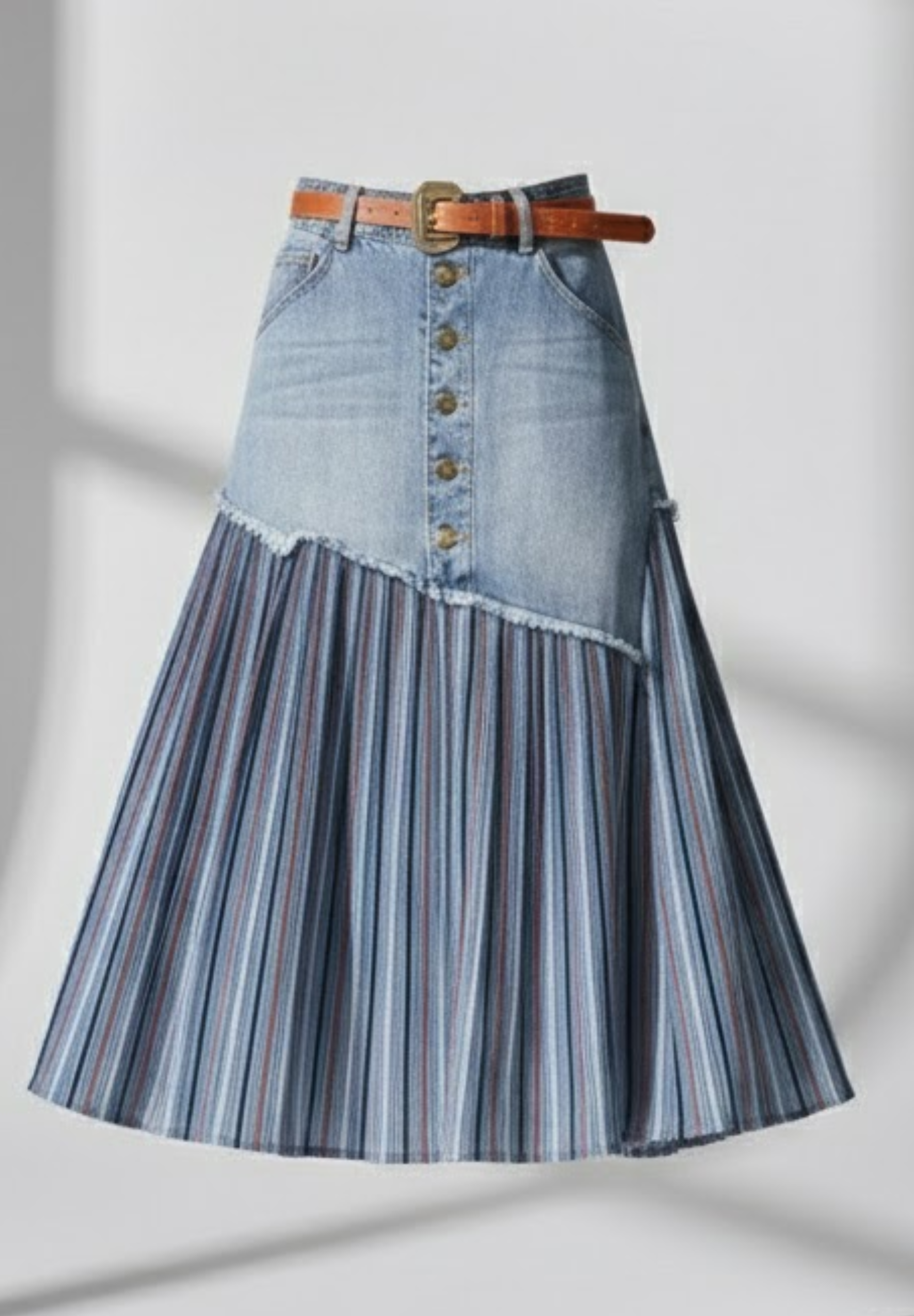 Jupe en jean plissée PLISSÉA – L’élégance denim au mouvement fluide