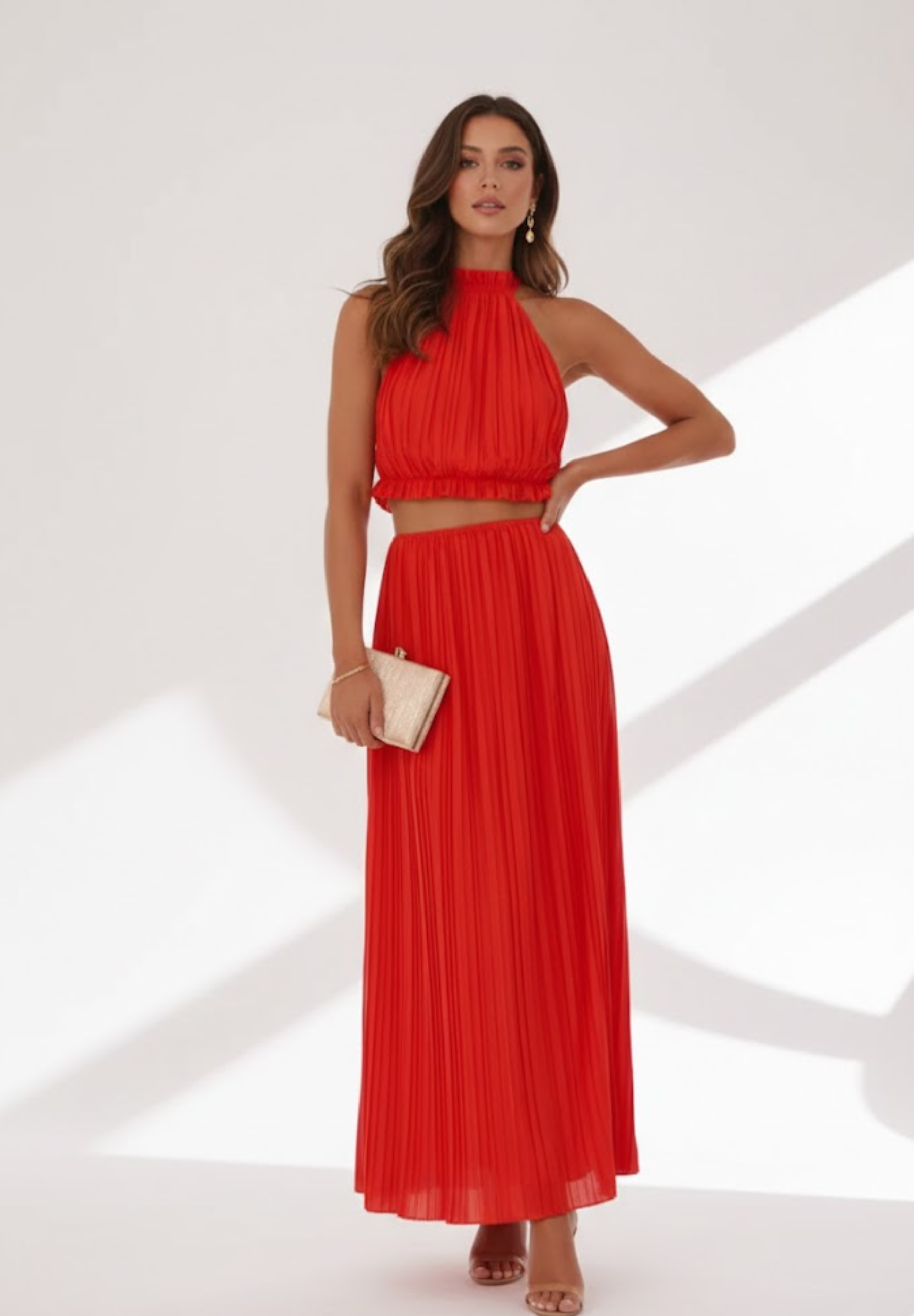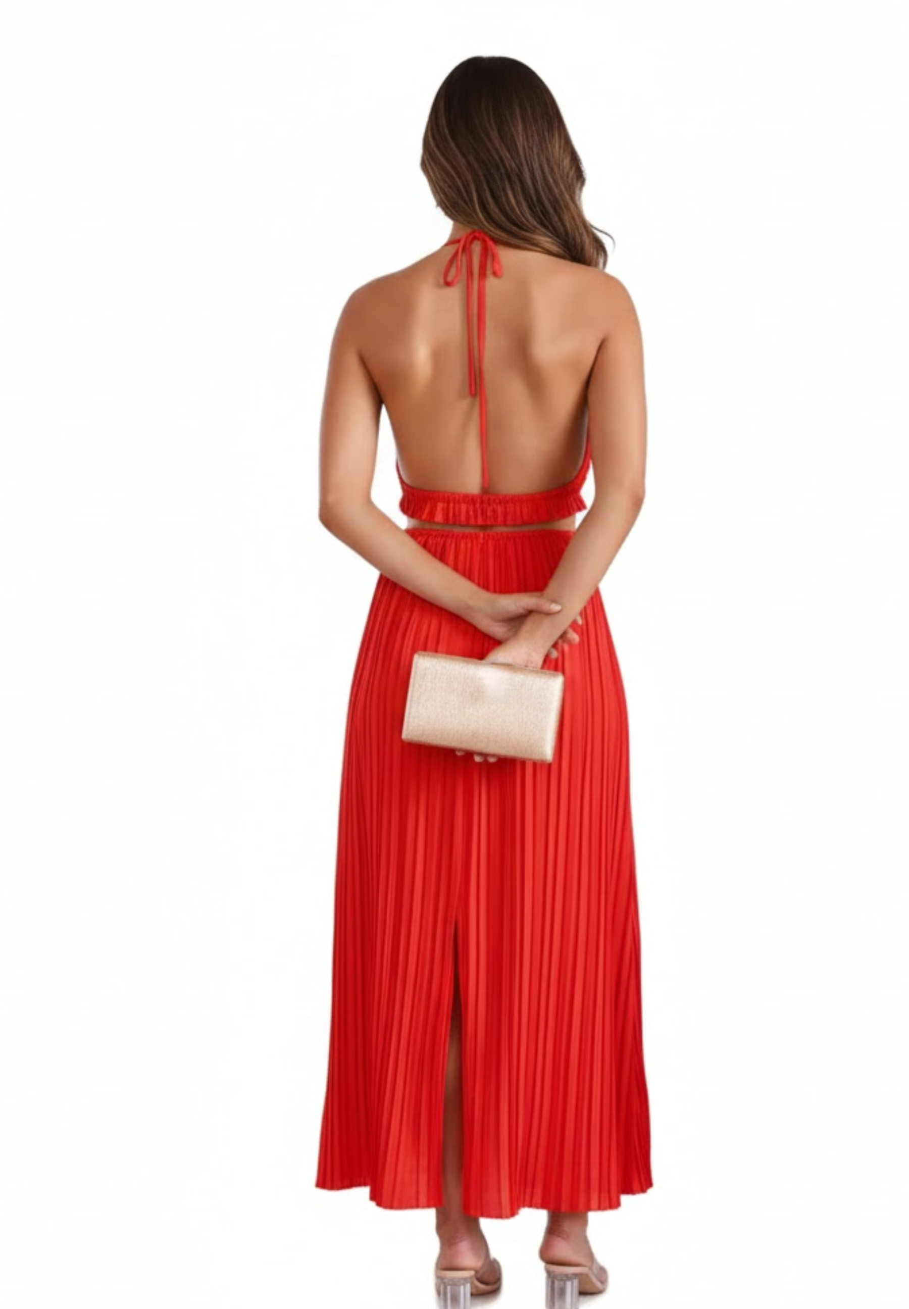 Chic, moderne et irrésistiblement féminine, la Jupe longue à dos nu plissée est la pièce idéale pour composer une tenue mémorable.
