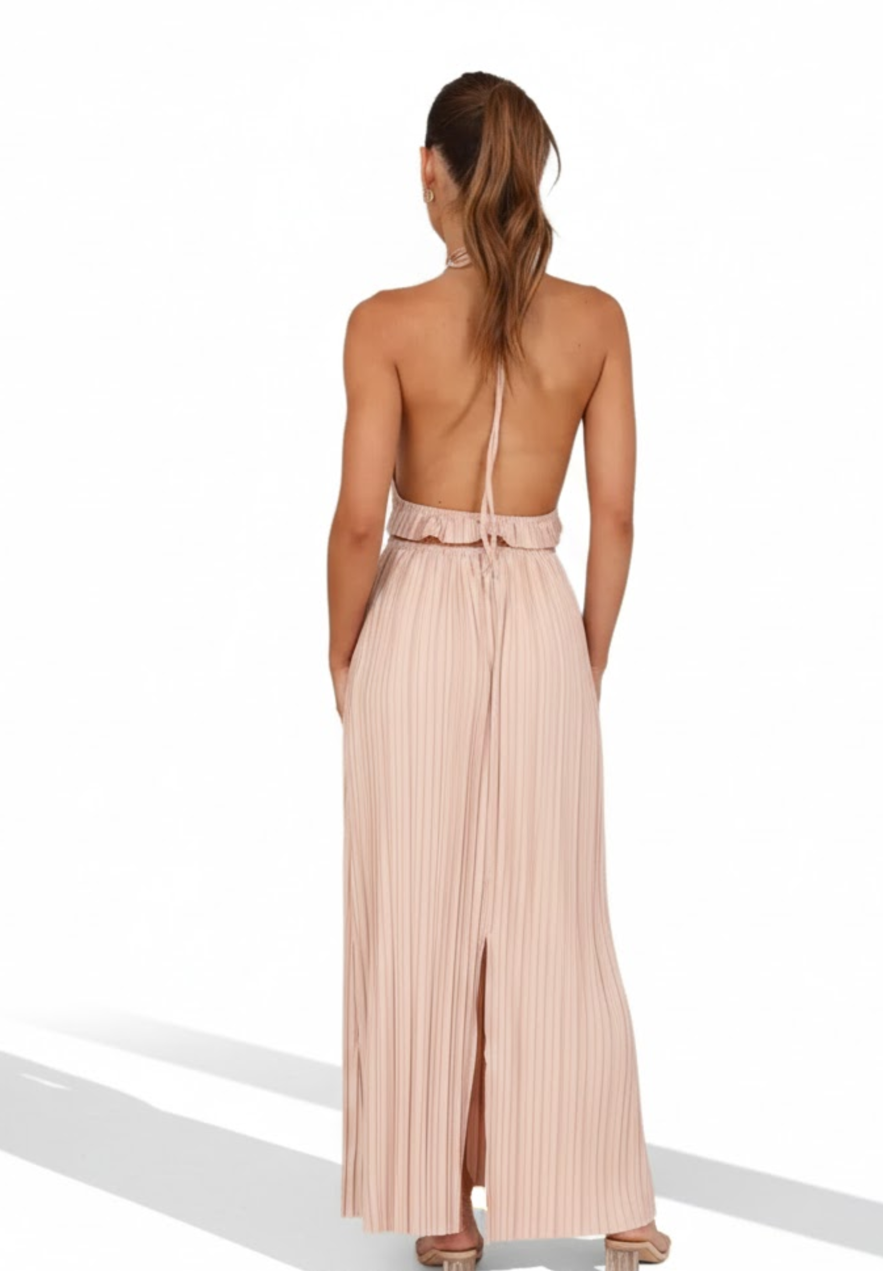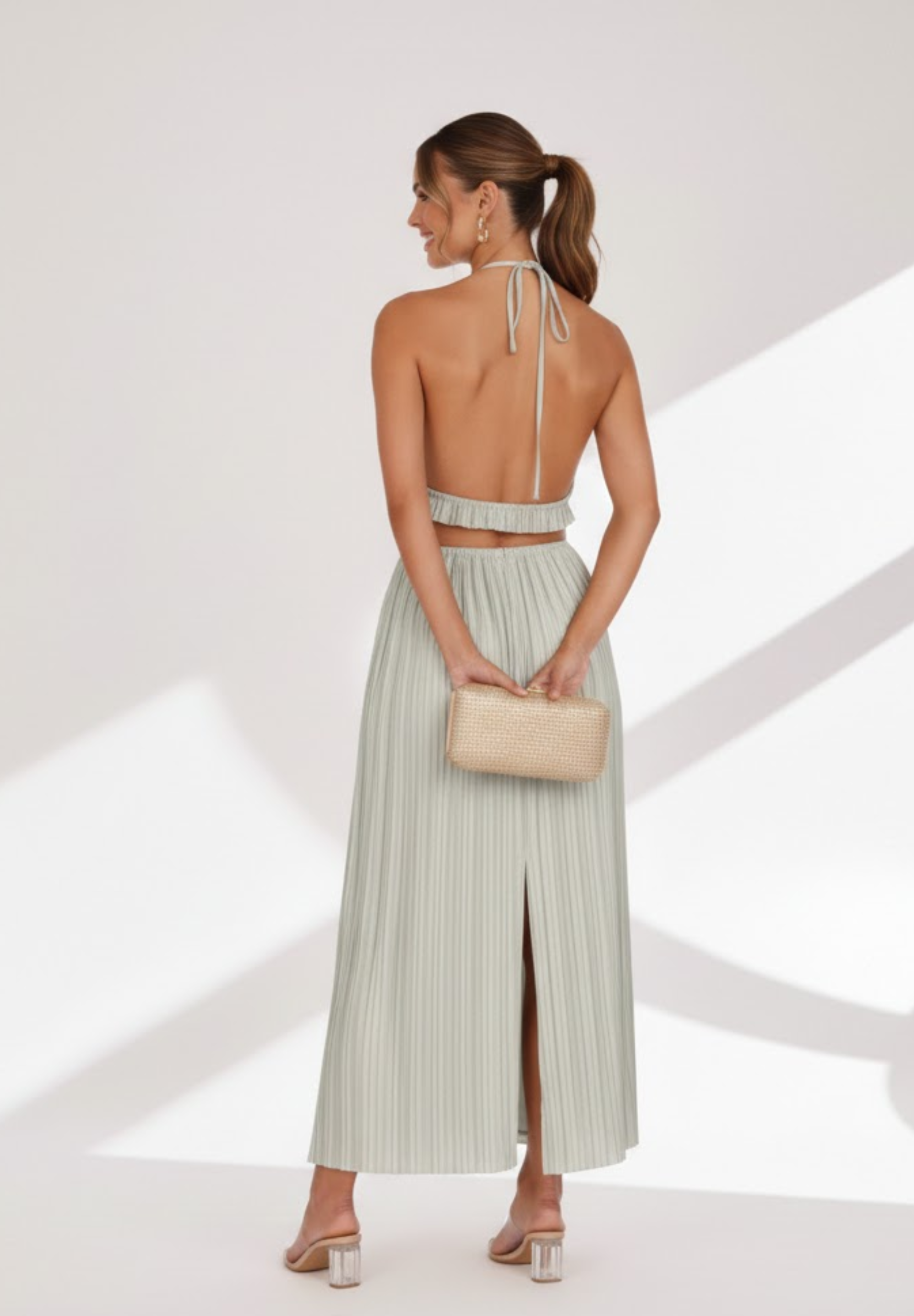 Jupe longue à dos nu plissée : élégance audacieuse et féminité assumée