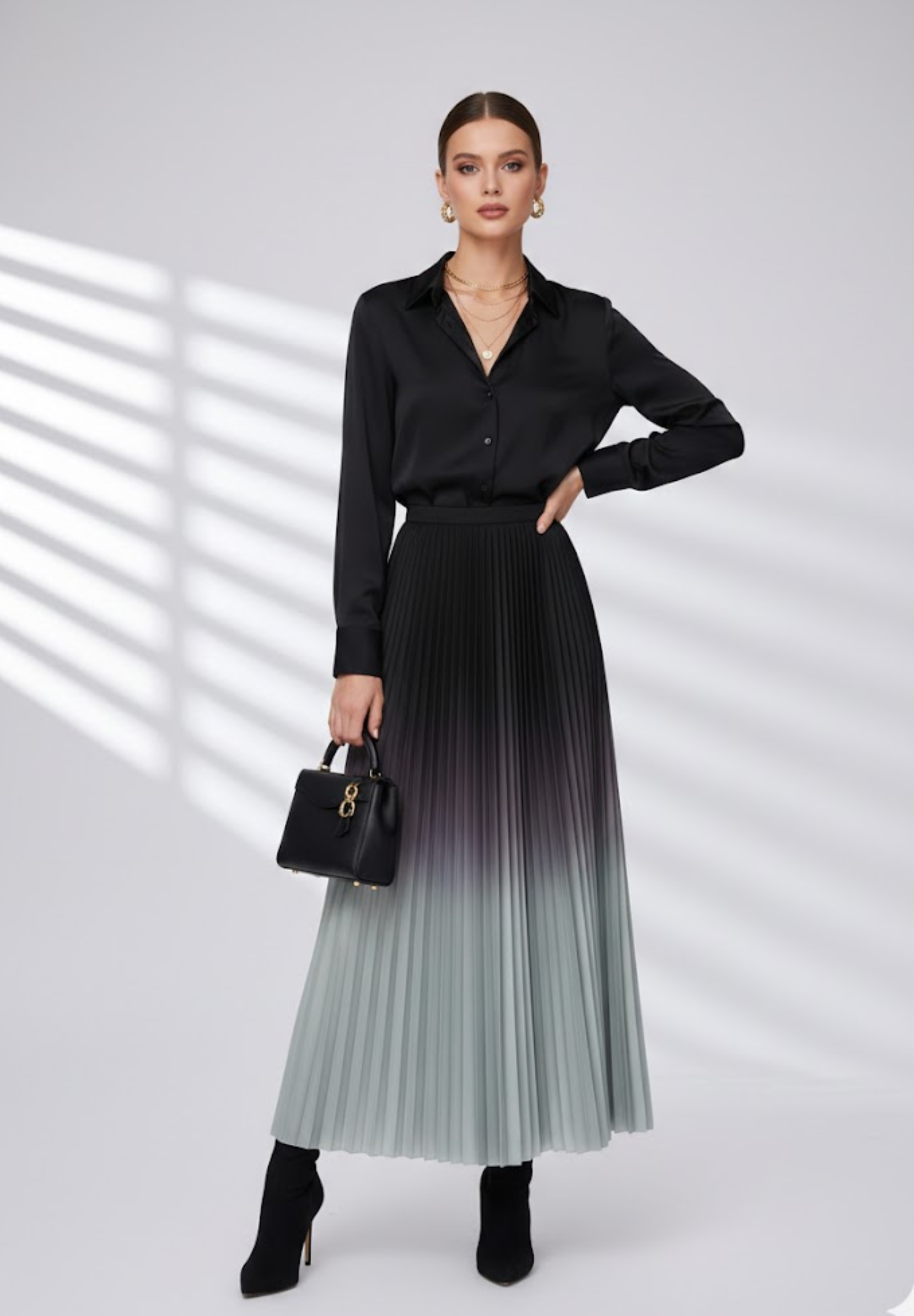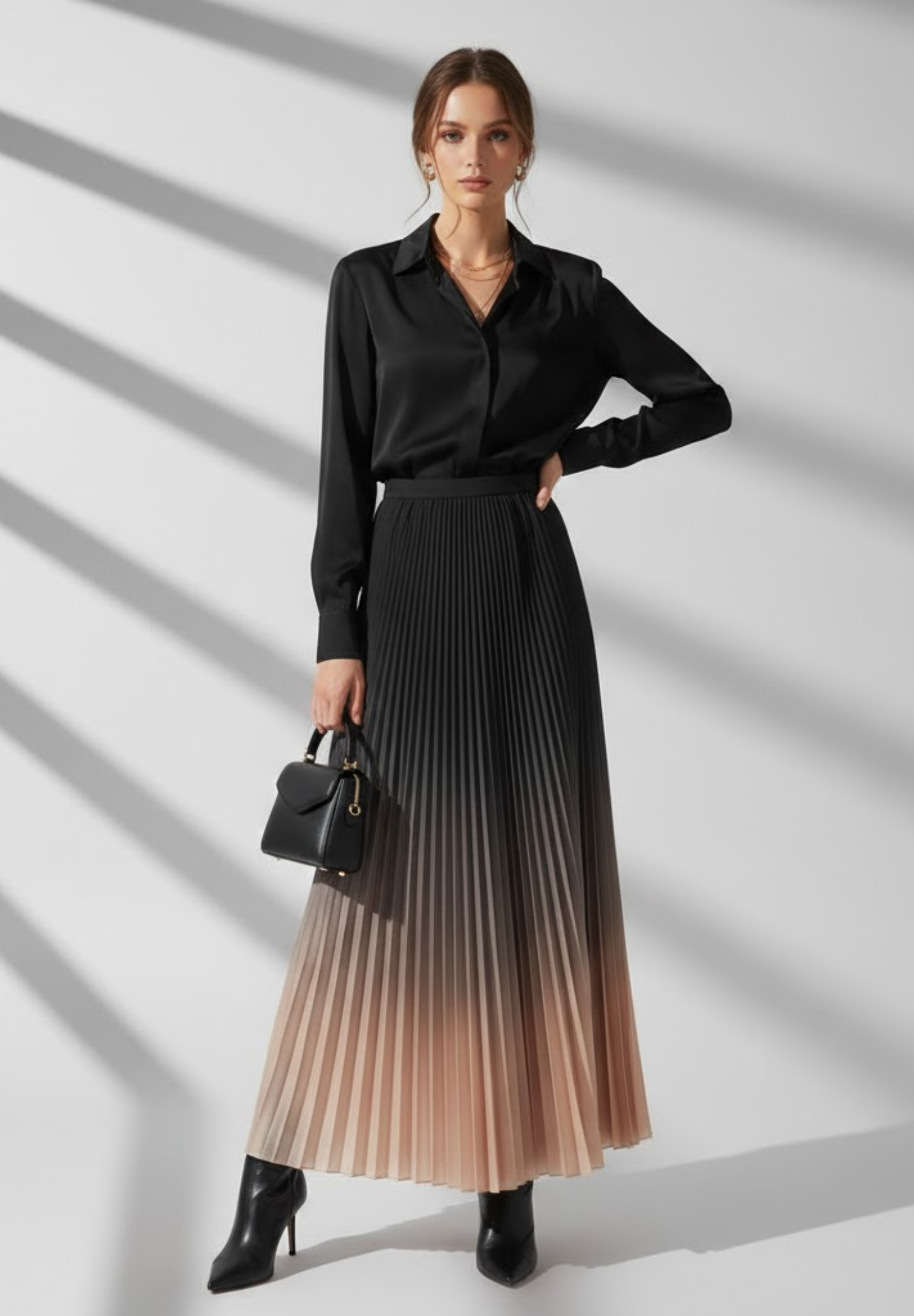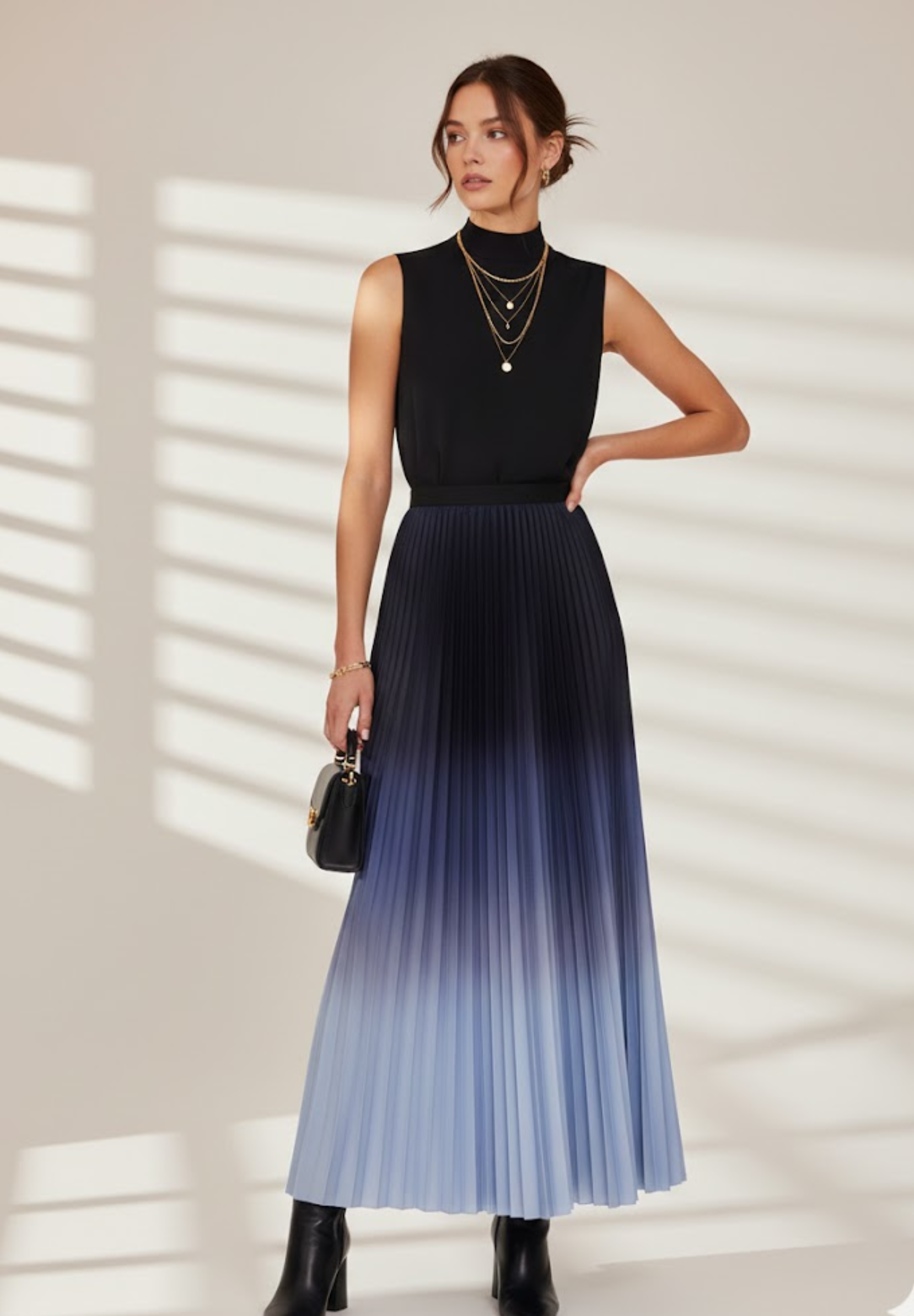 Jupe longue plissée dégradée : une élégance fluide aux nuances subtiles