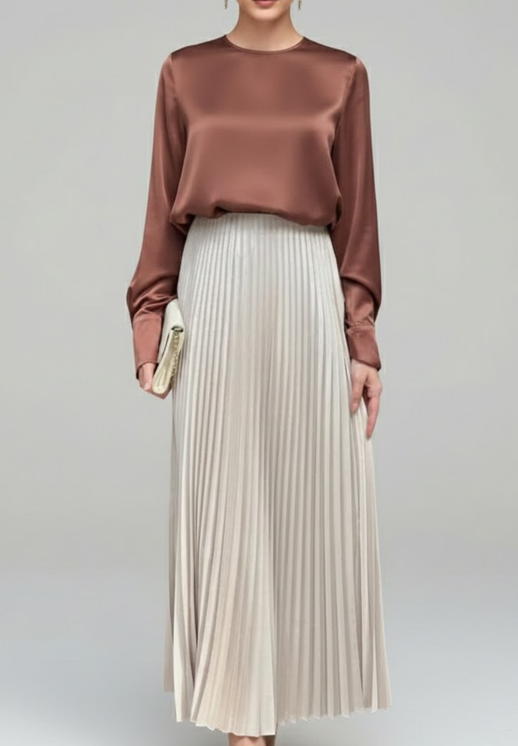 Jupe mi longue plissée : l’élégance qui accompagne chaque mouvement