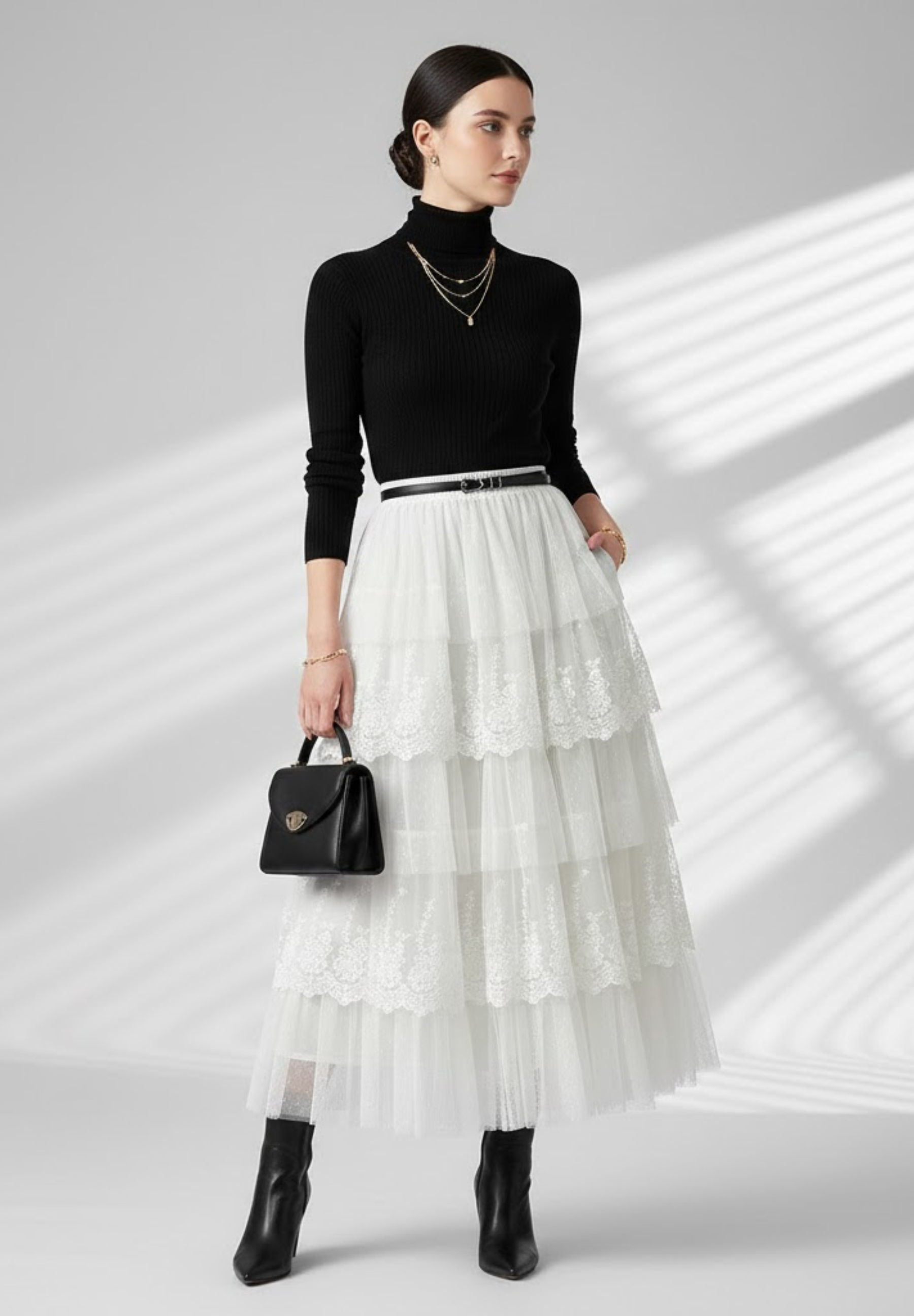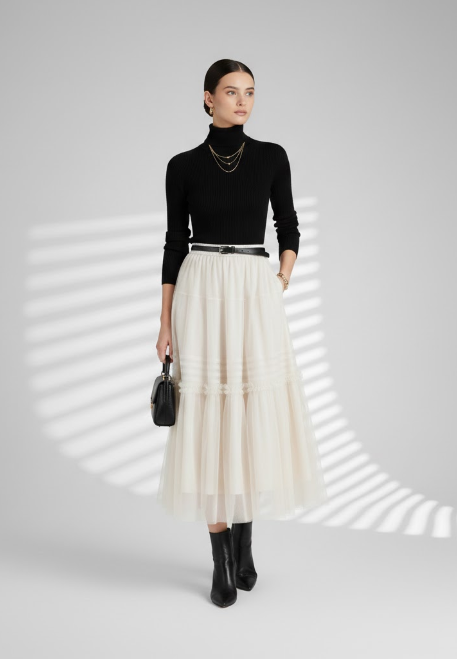 Élégante, féminine et intemporelle, la jupe mi longue plissée est la pièce incontournable pour créer des looks raffinés et sans effort.