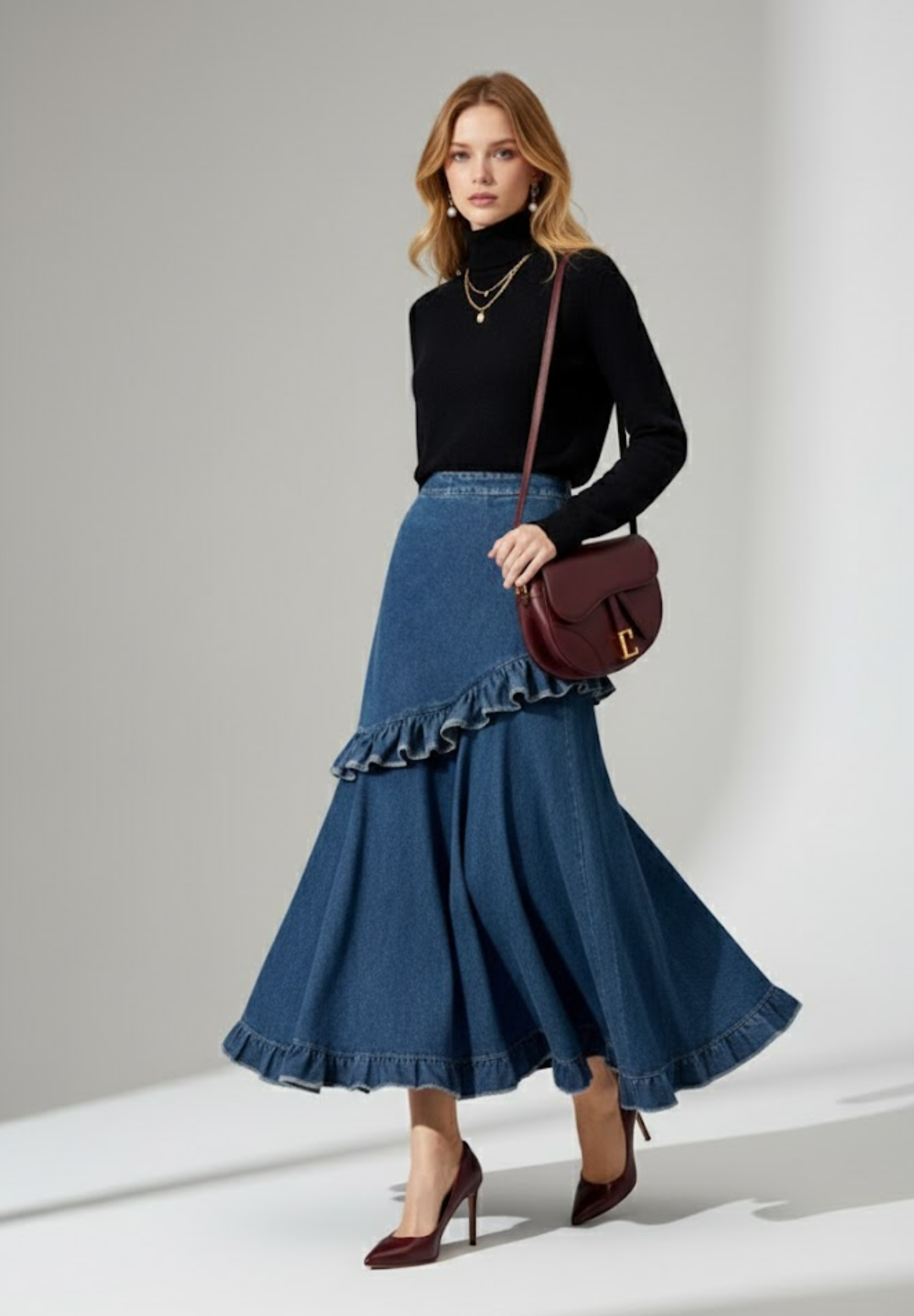 - Style “cake skirt” (jupe à étages) pour un effet fluide et aérien