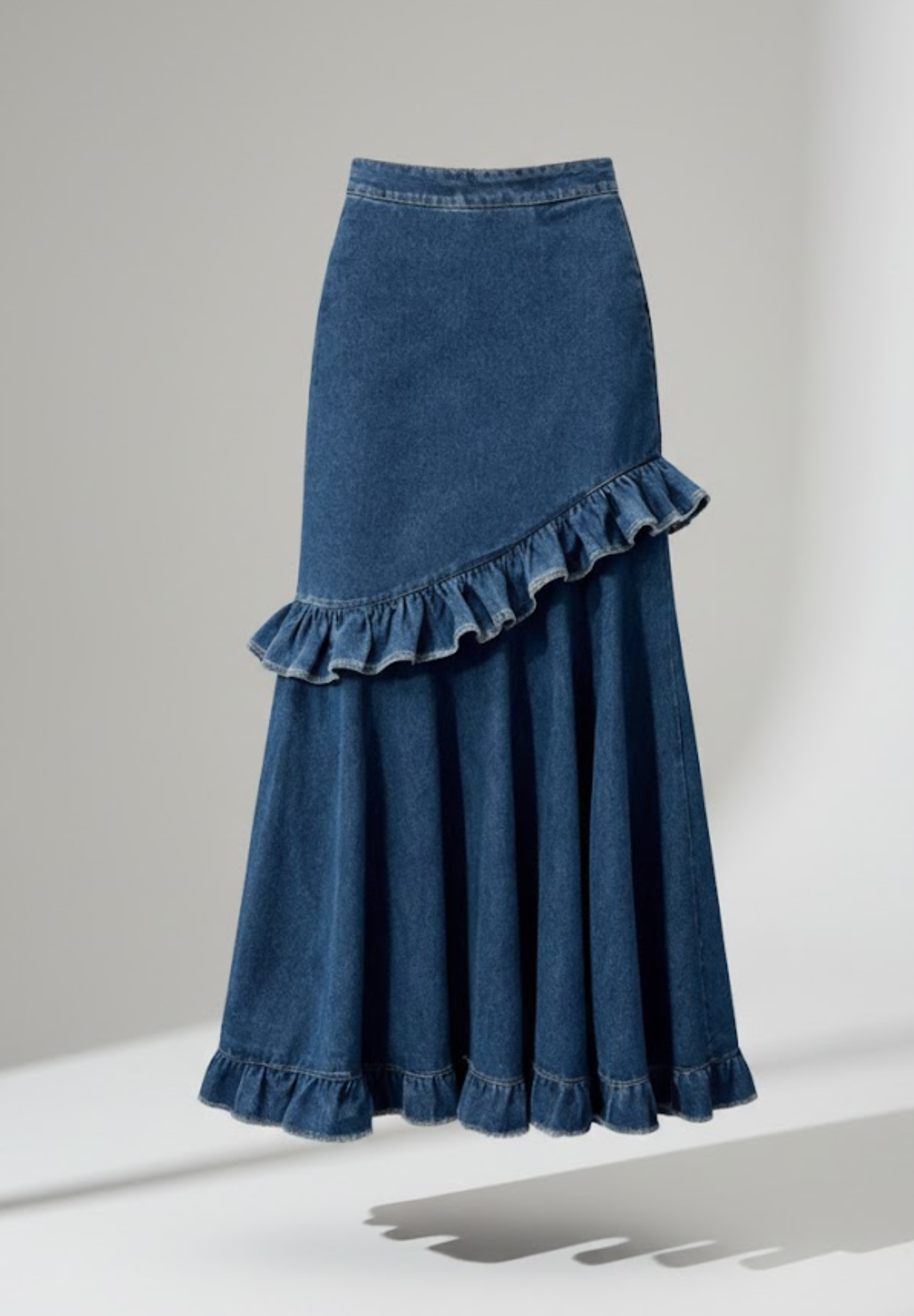 - Type de jupe : Jupe plissée asymétrique à étages (cake skirt)