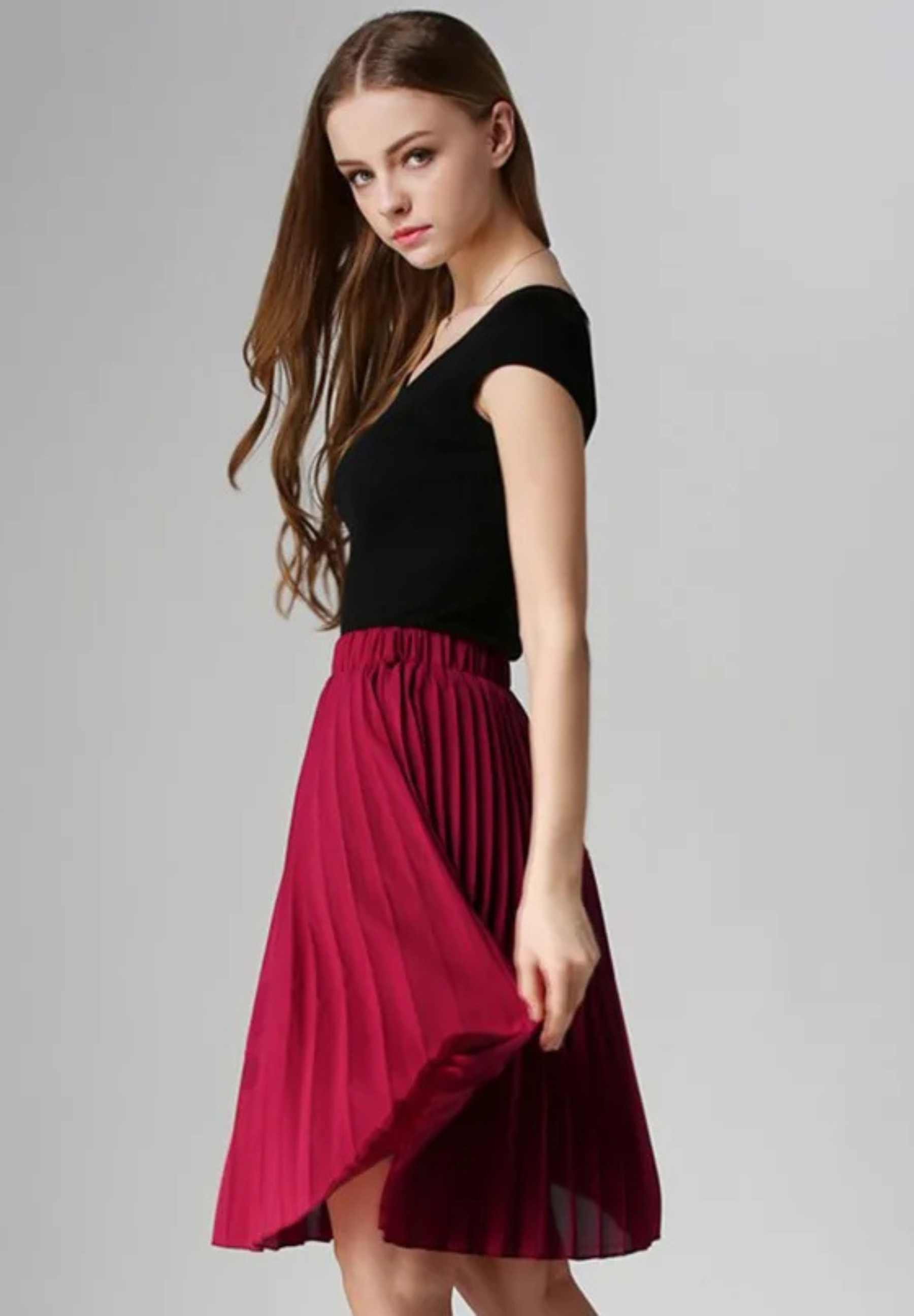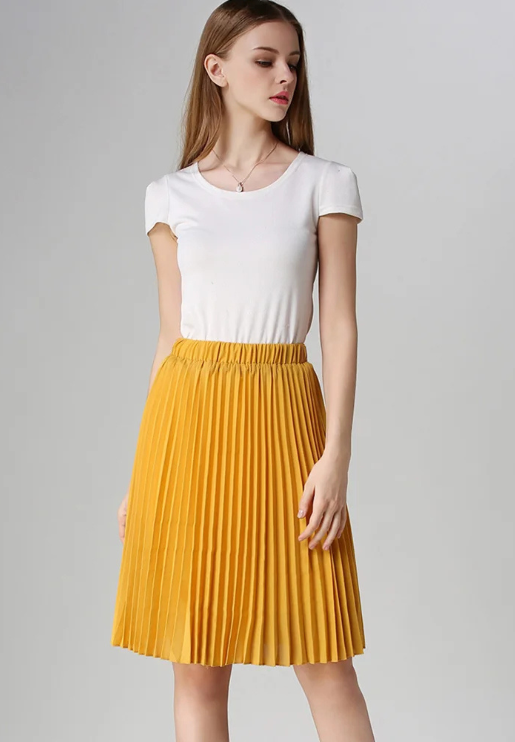 Élégante, fluide et facile à porter, la jupe midi plissée est la pièce idéale pour composer des looks raffinés sans effort.