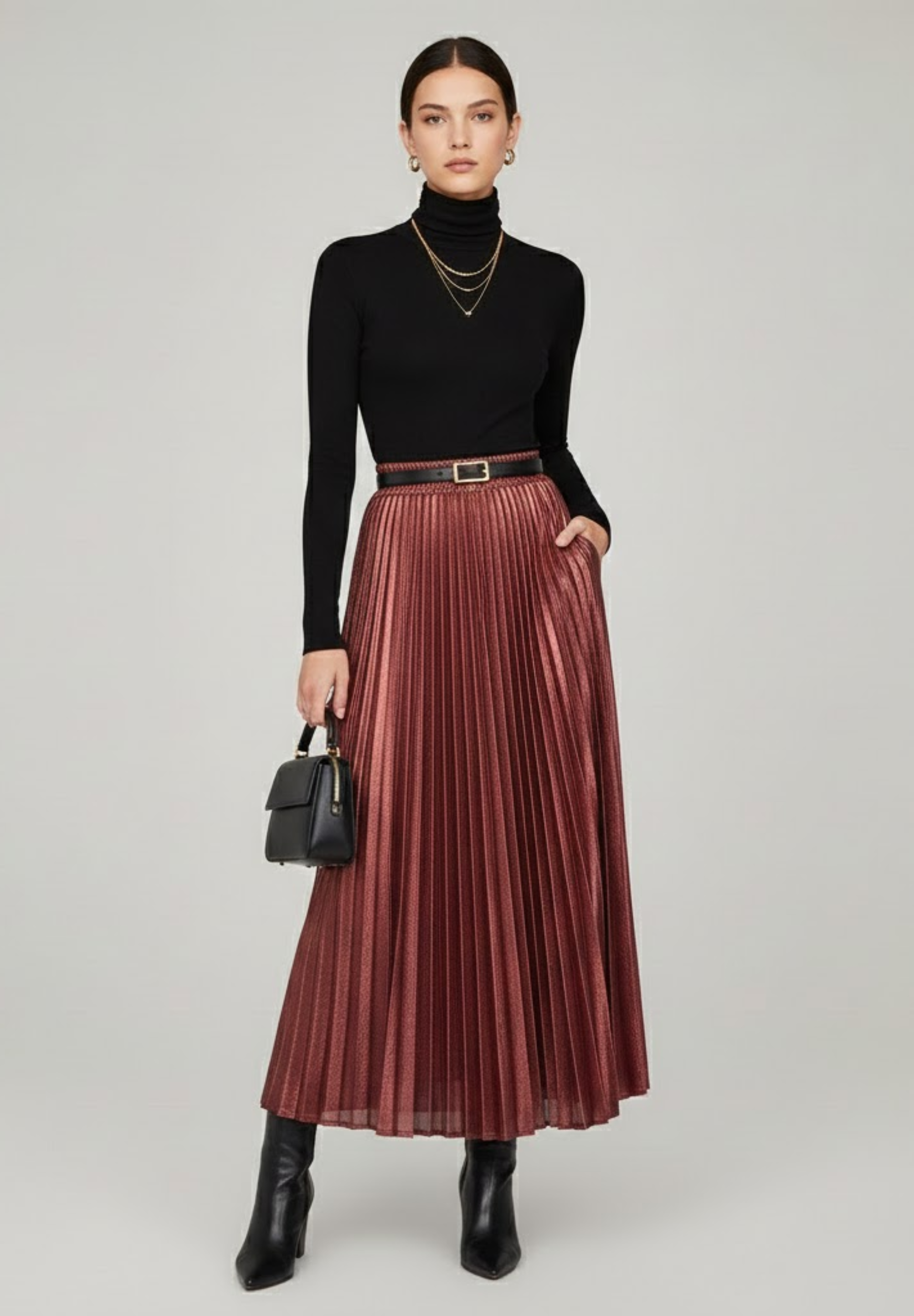 Associée à un haut minimaliste ou à une pièce plus habillée, la jupe plissée argentée devient instantanément le centre de votre look.
