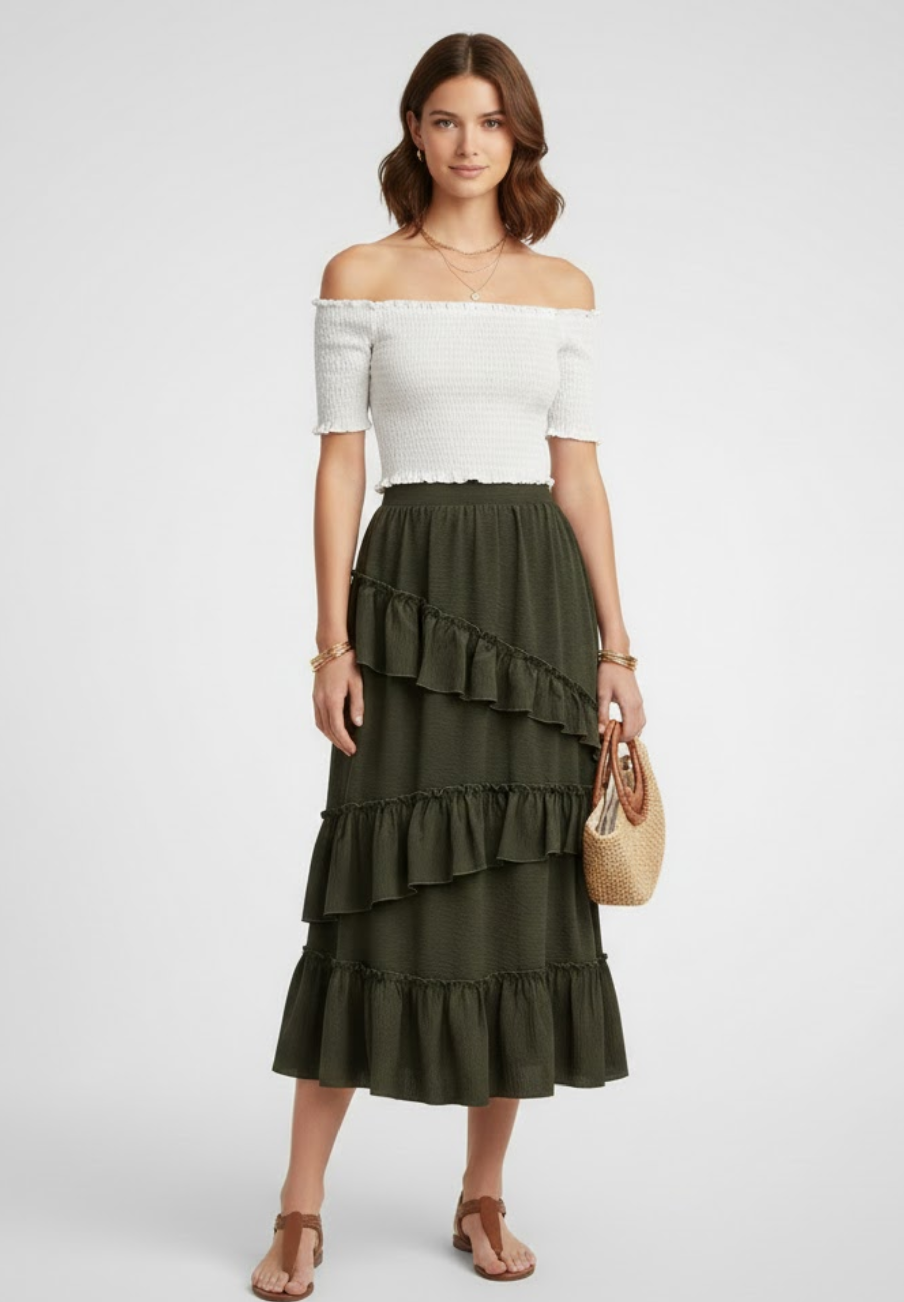 Craquez pour la jupe plissée verte et dynamisez votre style avec une pièce élégante et pleine de caractère. Une jupe tendance et intemporelle, parfaite pour créer des looks uniques et raffinés, quelle que soit la saison