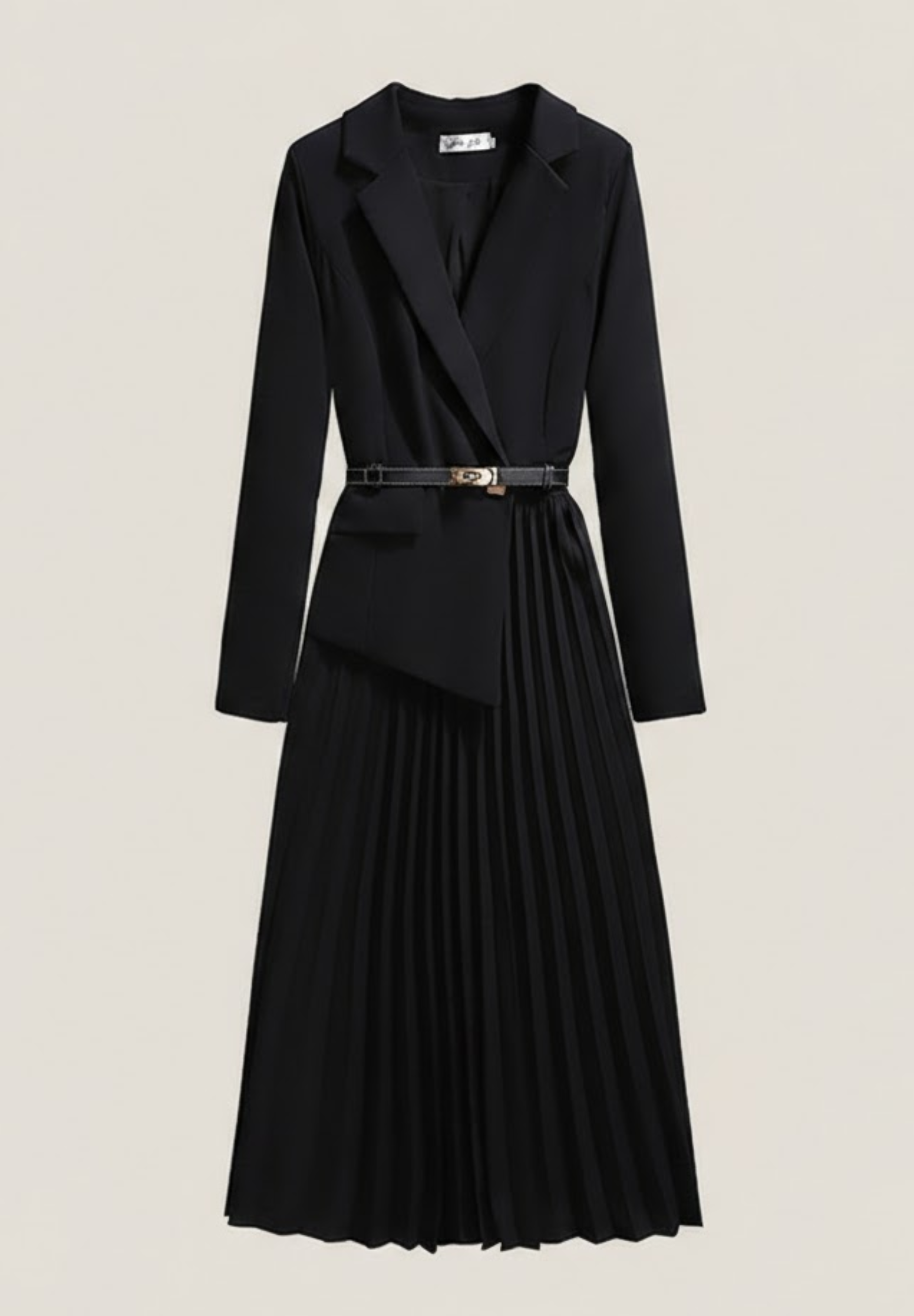 Chic, moderne et résolument élégante, la robe plissée modèle #COSTUME s’inspire des codes du tailoring pour offrir une silhouette sophistiquée et féminine. Son plissé structuré apporte du mouvement tout en conservant une allure soignée, idéale pour celles qui recherchent une robe au style fort et raffiné. Une pièce parfaite pour composer des looks élégants, du quotidien aux occasions plus habillées.